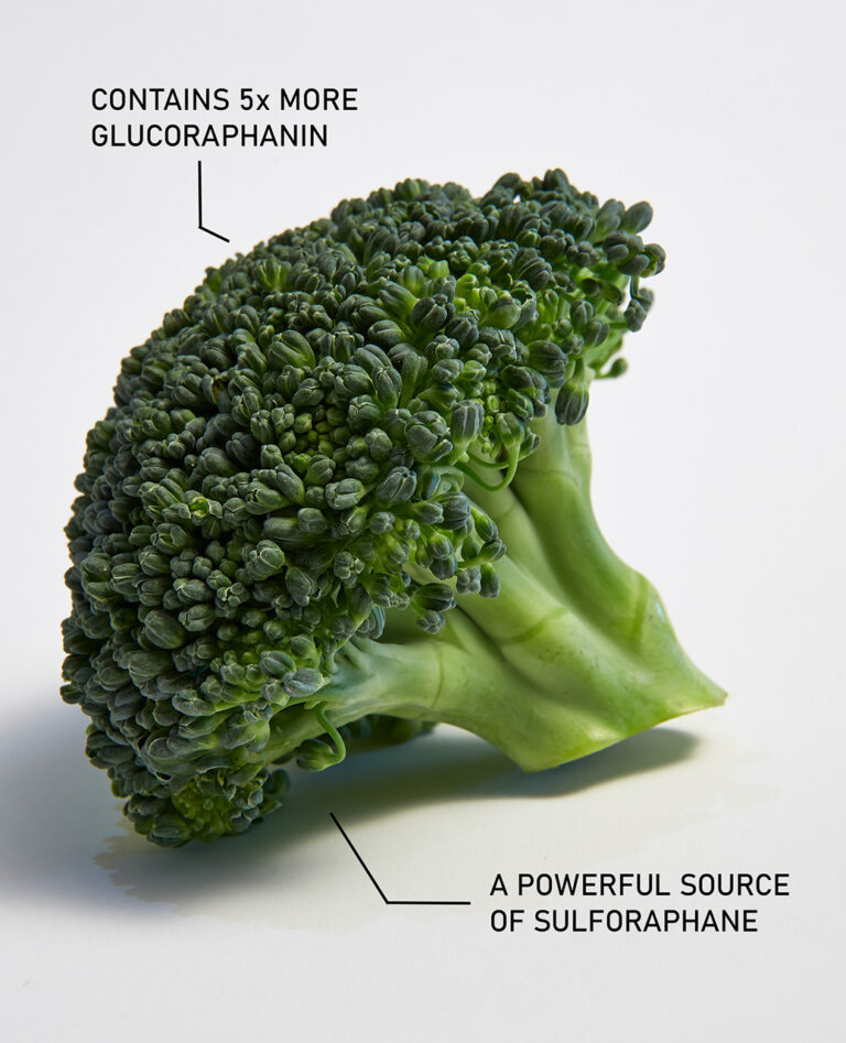 But our unique super-broccoli can deliver ~5x as much of these magic molecules. It’s broccoli, but better.