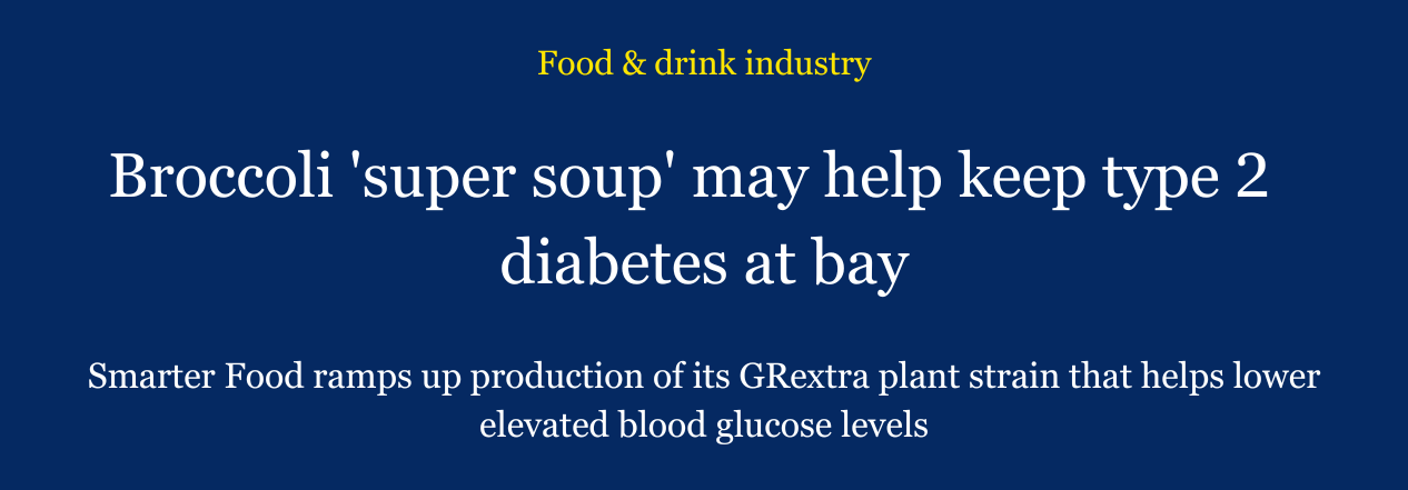 “SmarterNaturally vegetable soup, uses a unique variety of broccoli that has a high level of a naturally occurring compound – Glucoraphanin – that research suggests can have a beneficial impact on a range of health indicators, including helping to maintain healthy blood glucose and cholesterol levels.”