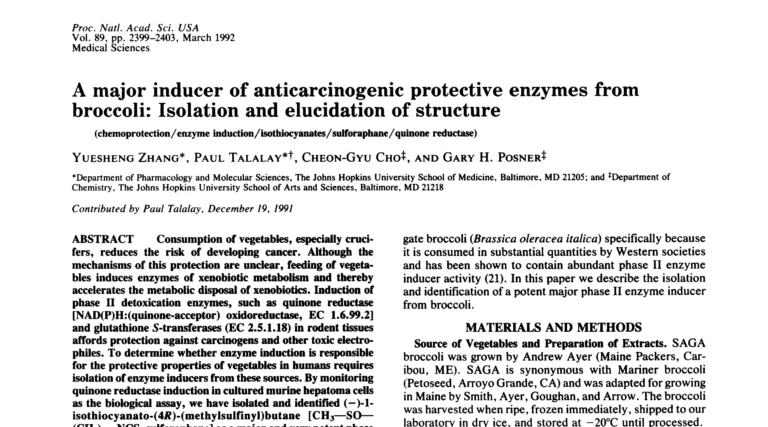 The first paper on the benefits of sulforaphane (Zhang, 1992)